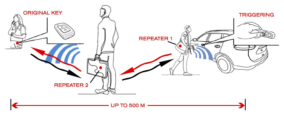 - Access to such cars is provided by relaying signals from the original smart key.